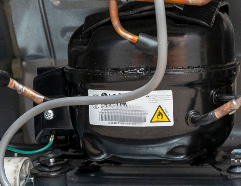 The compressor is an essential component of an air conditioner or refrigerator, responsible for compressing the refrigerant gas and circulating it through the cooling system.